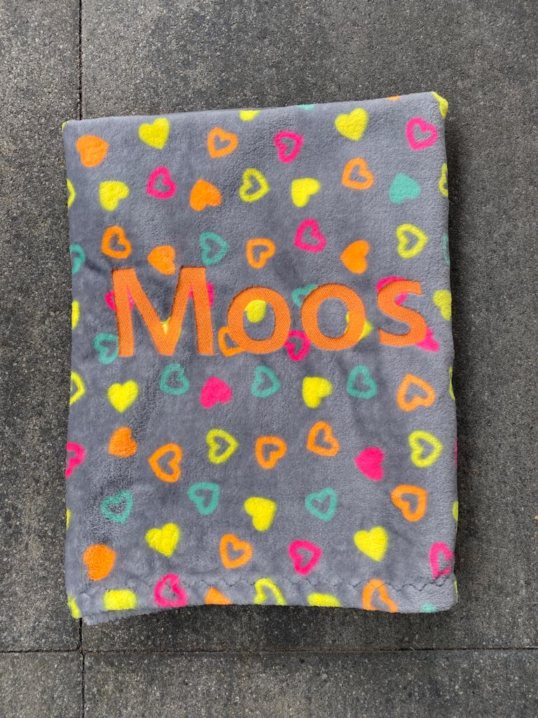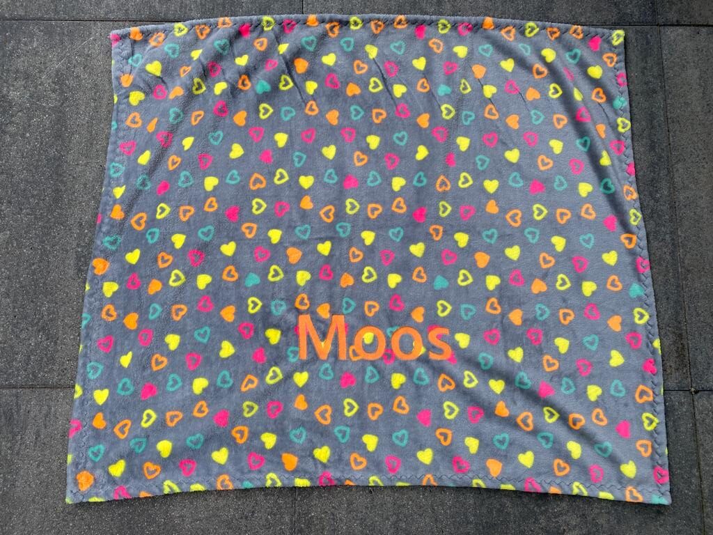 Met dit kleedje heb je altijd een plekje blij waar de hond op kan liggen. Heel handig op bijvoorbeeld het terras of het strand. De kleedjes hebben een afmeting van 70×90 cm en worden speciaal met de naam van de hond gemaakt.