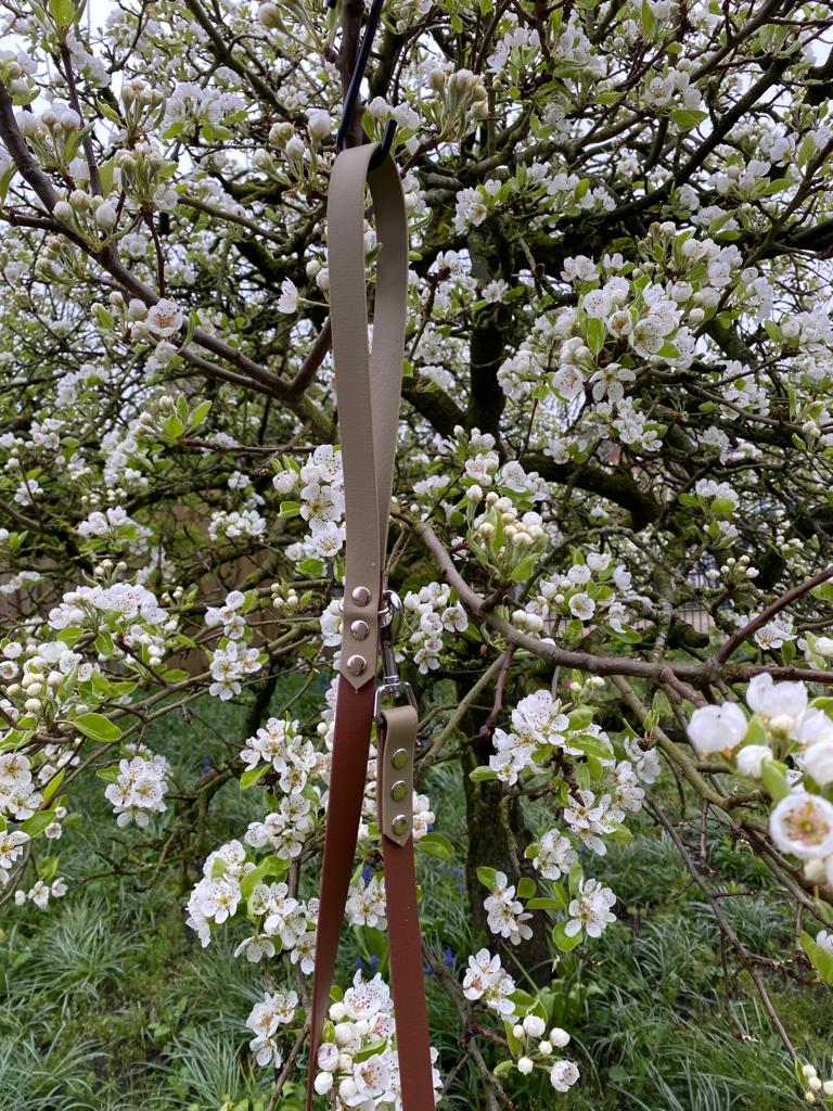 Met deze mooie lijnen loop je voortaan in stijl over straat. De lijnen zijn gemaakt van leer en zijn erg stevig. Bij het handvat zit een extra ring waar je bijvoorbeeld een poepszakje aan kan bevestigen.