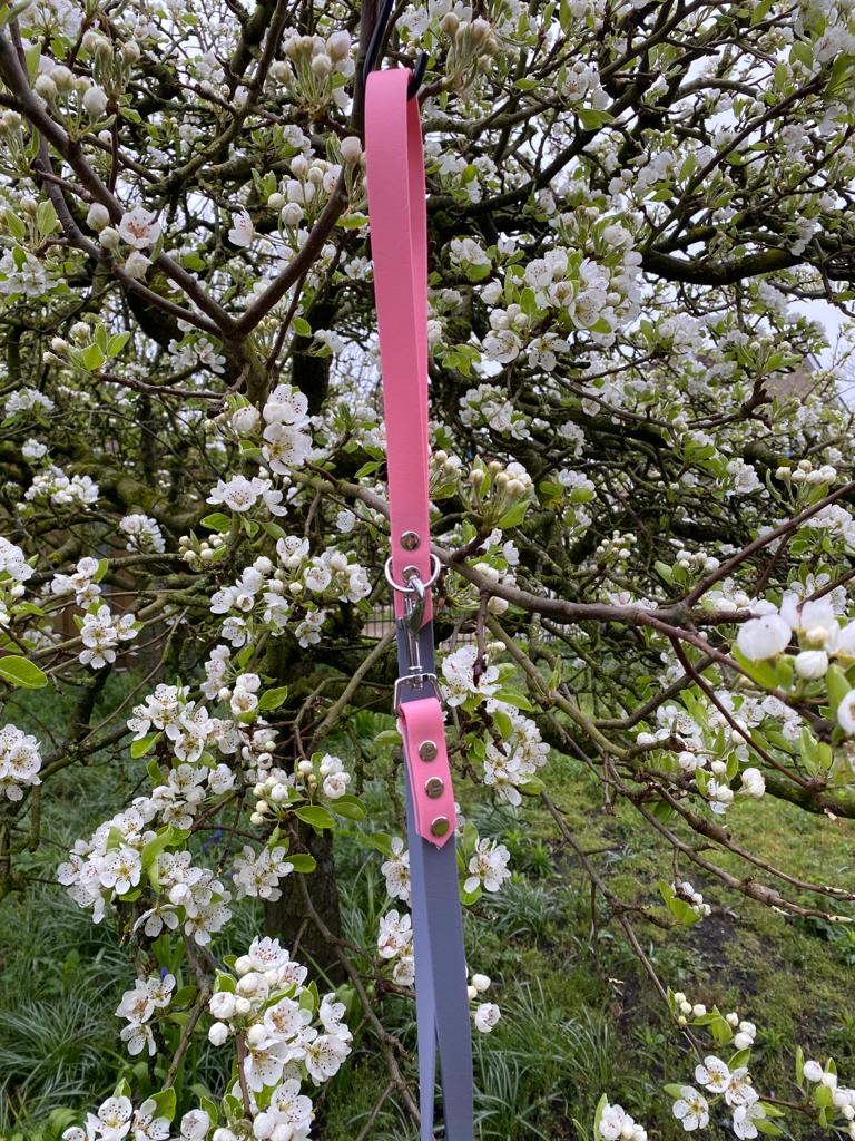 Met deze mooie lijnen loop je voortaan in stijl over straat. De lijnen zijn gemaakt van leer en zijn erg stevig. Bij het handvat zit een extra ring waar je bijvoorbeeld een poepszakje aan kan bevestigen.